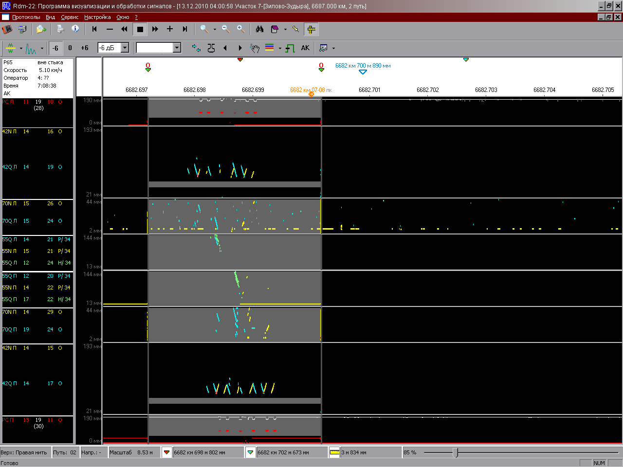 - 22.12.2010г. вагон дефектоскоп УЗМ №70048 Яковлев. Сигнал записи на дефект 21.2 присутствует.