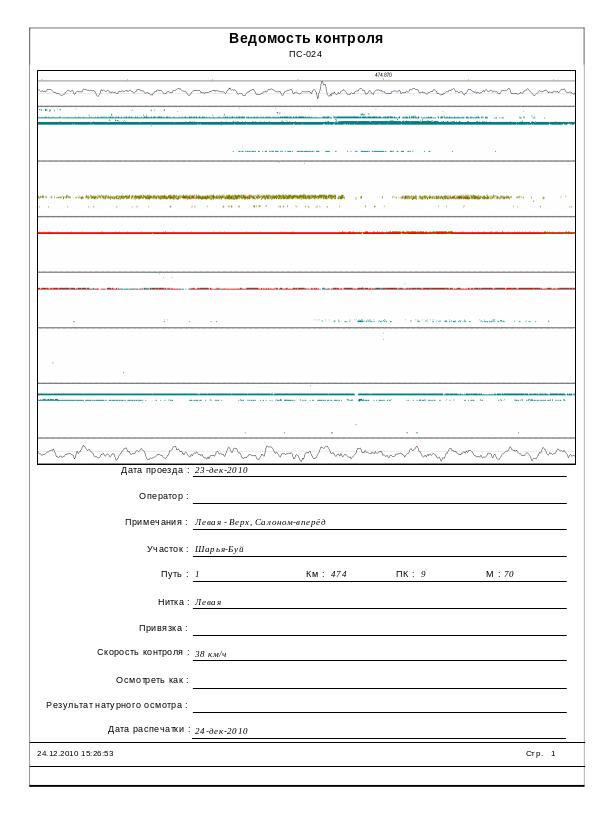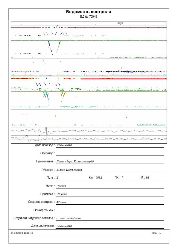 Дефектограмма ПС №024 23.12.10г