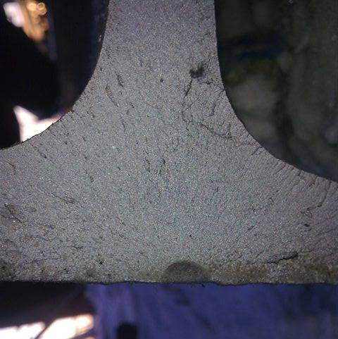 Дефект расположен в подошве рельса в проекции шейки с параметрами: высота 3,5 мм, ширина 8 мм.