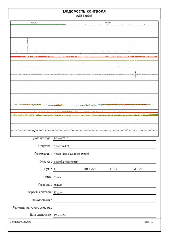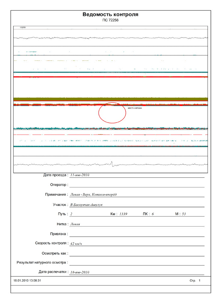 - 18.01.2010 г. проход вагона – путеизмерителя ПС № 47 – выявлено 8 неисправностей 2 степени. На месте излома неисправности пути отсутствуют. Дефектных рельсов в зоне моста нет.