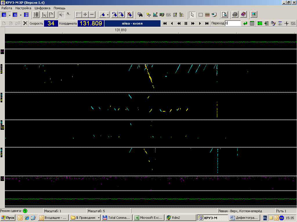 06.12.2010г. автомотриса-путеизмеритель-дефектоскоп МТКП-063. Сигналы от ОДР отсутствуют.