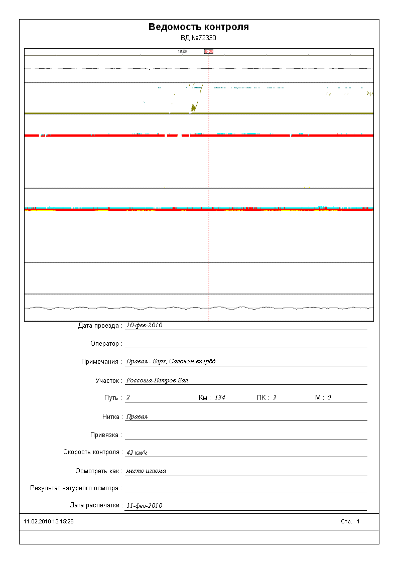 Отступление от норм содержания пути по данным последнего прохода вагона путеизмерителя № ПС-11, 04 февраля 2010г. оценка км пути 40 баллов. (11шт отступлений 2 степени: уровень – 5 шт, перекос -4 шт, рихтовка – 2 шт.)