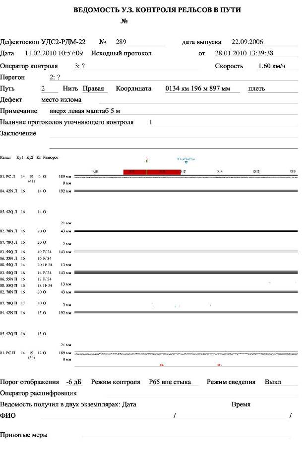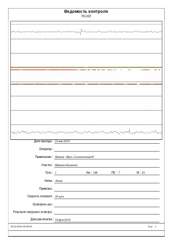 Дефектограмма прохода ПС №323 от 22 января 2010 года