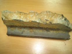 Код дефекта согласно НТД/ЦП-2-93 код 56.3 – пятно в виде неполной сварки – несплавление, с геометрическими размерами 9х8 мм с внутренней стороны шейки рельса и на глубине 130мм. от поверхности катания.