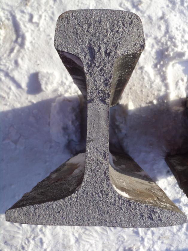 8. Предполагаемая причина – излом рельса классифицируется по коду 56.3 - поперечный излом рельса, холодная сварка в зоне шейки рельса. Излом произошел перпендикулярно продольной оси рельса по центру сварного шва. Визуальным осмотром сечения излома установлено, что признаки трещин усталостного развития отсутствуют. Излом носит хрупкий характер.