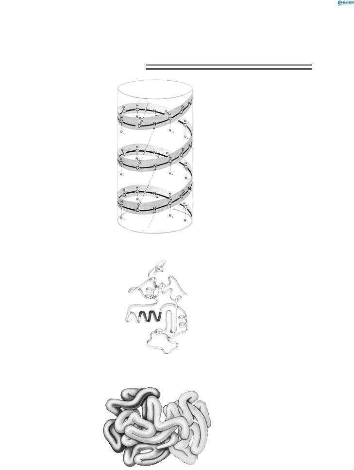 Поліпептидний ланцюг зазвичай згорнутий у спіраль, що має певну просторову структуру — α -спіраль: