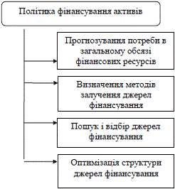 Політика фінансування активів є складовою інвестиційної політики підприємства і за своєю суттю тісно пов’язана з формуванням інвестиційних ресурсів. Нами в [1, с. 521] показано загальну схему аналітичних робіт при формуванні інвестиційних ресурсів підприємства, яка містить наступні етапи: