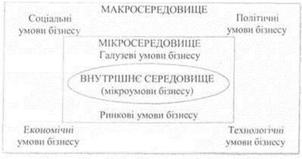 сферах зовнішнього оточення фірми, таких як економіка, політика, ринок,