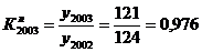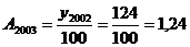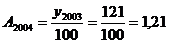 одиниці продукції у 2003 р.,1 - обсяг виробленої продукції 2004 р.,0