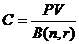 де В - приведена вартість ануїтету в одну грошову одиницю;- кількість періодів, коли виникають грошові потоки.