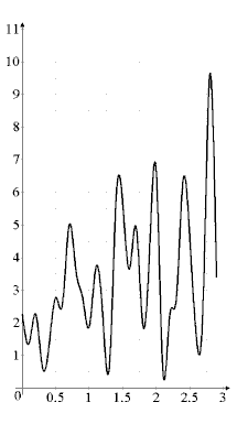 Для заданих трьох значень математичного сподівання розрахуємо 30 значень випадкової величини і розташуємо їх на вісі часу з кроком 0,1 секунда. Таким чином отримаємо три варіанти реалізації вхідного випадкового процесу.