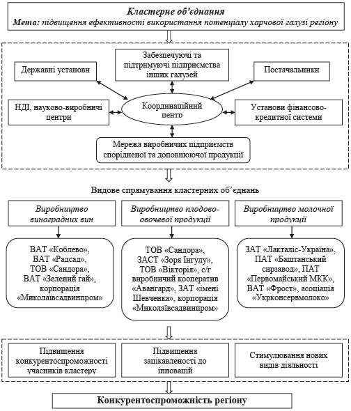 кластерних об’єднань у харчовій галузі Миколаївського регіону