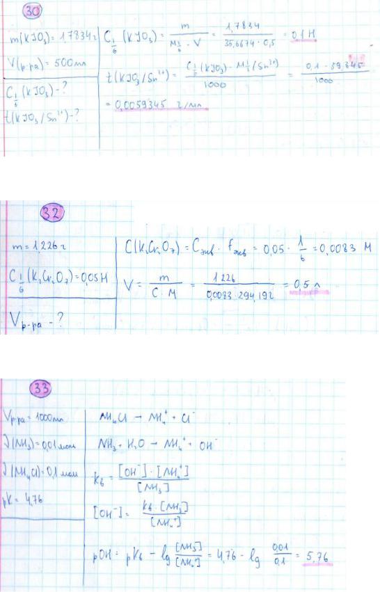 30.Навеску калия йодата массой 1,7834 г растворили в воде и получили 500,0 мл раствора. Рассчитать молярную концентрацию эквивалента соли в полученном растворе и его титриметрический фактор пересчета по олову (II).
