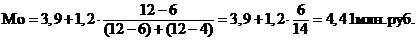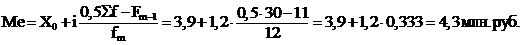 Хо = 3,9 млн. руб. - нижняя граница модального интервала;= 1,2 млн. руб. - величина модального интервала;m = 12 частота в модальном интервале;m-1 = 6 - частота в интервале перед модальным;m+1 = 4 - частота в интервале после модального;