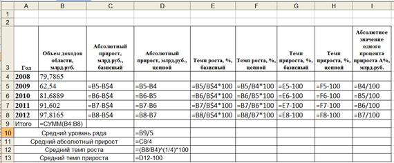 Рассчитаем показатели динамики доходной части бюджета Челябинской области за период 2008-2012 гг. по формулам:
