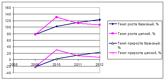 Наблюдается положительная динамика объема доходов Челябинской области в течение всего периода. Она носит планомерный характер с переменным ускорением. Об этом говорят цепные абсолютные приросты и цепные темпы роста и прироста. Это же подтверждает и графическое изображение динамики объема доходов области (см. рисунок 3).