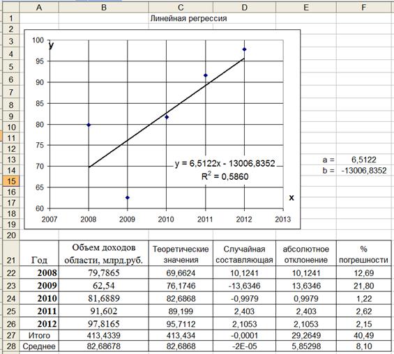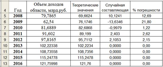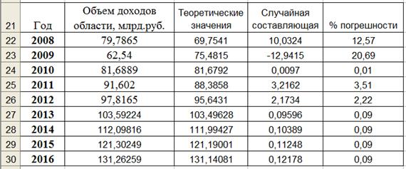 Рисунок 2.6 Результаты линейной регрессии доходов Челябинской области