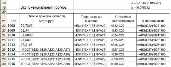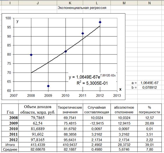 Рисунок 2.7 Результаты экспоненциальной регрессии доходов области