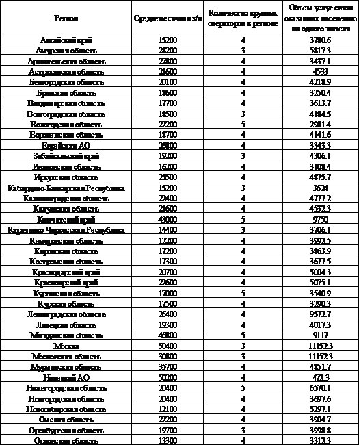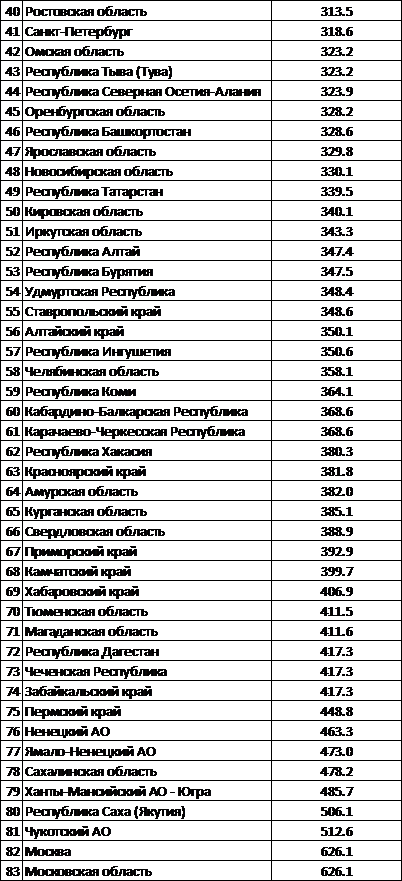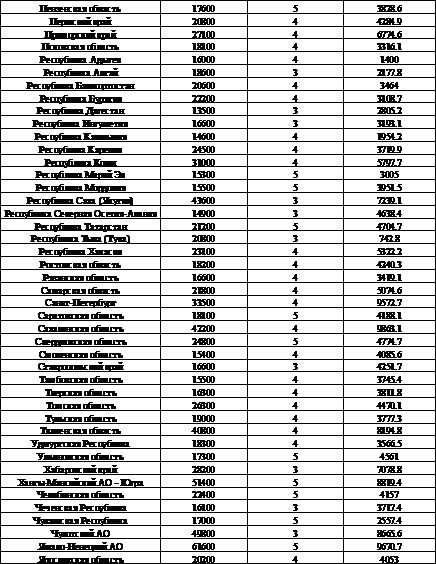 Другие показатели по регионам