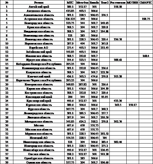 Стоимость «средней корзины» по операторам
