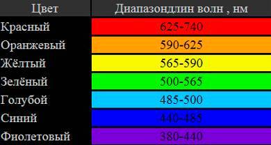 Рисунок 1.1 - Длины волн цвета