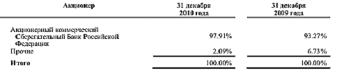 декабря 2009 года Акционерный коммерческий Сберегательный Банк Российской Федерации («Сбербанк России») приобрел контрольный пакет из 834,795,559 простых и 708,404 привилегированных акций Банка. Конечной контролирующей стороной Сбербанка России является Центральный банк Российской Федерации.