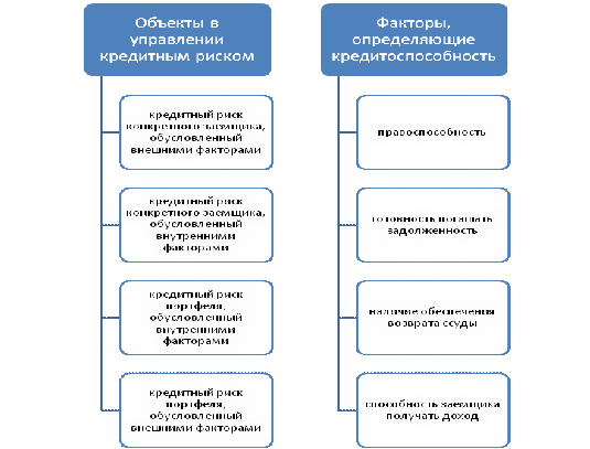 Рис. 13. Объекты процесса управления кредитным риском и факторы,