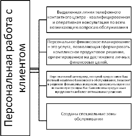 Как следует из приведенных данных, спектр предоставляемых услуг весьма широк. Особо остановимся на так называемом вип-направлении, так как его внедрение и развитие характеризует банк как инновационный и возможно только при наличии определенных информационных технологий. В банке действует вип-программа персональной помощи вип-клиентам. Формат данной услуги - что предоставляется клиенту: