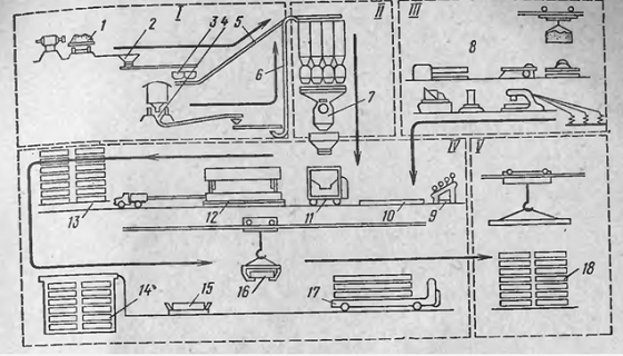 цепочке от одного агрегата к другому. Тепловая и влажная обработка происходит