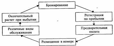 Для осуществления замкнутого технологического цикла обслуживания гостей (рис. 2.8) в гостинице предусмотрены следующие основные службы:
