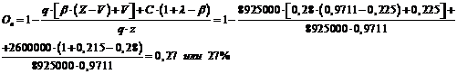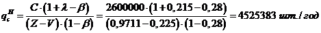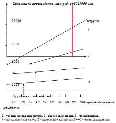 При расчетах примем, что планируемый выпуск кирпича составляет 85% производственной мощности предприятия, а налоги определяются как λ=0,215 величины постоянных затрат (условно - постоянные годовые налоги) и β=0,28 балансовой прибыли предприятия (переменные налоги, зависящие от производственной деятельности предприятия).