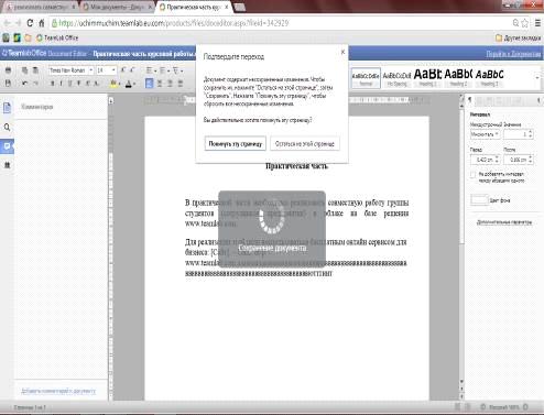 В практической части работы, группой из 4 человек (сотрудников предприятия) реализована работа в «облаке» на базе решения TeamLab Office. Были проверены и проанализированы аспекты, наиболее часто выступающие против «облачных» сервисов.