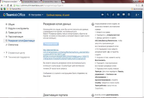 Здесь конечно сложно подтвердить либо опровергнуть все указанные на сайте TeamLab [17] меры безопасности не обладая специфическими знаниями. Решениям TeamLab доверяют такие крупные компании, как «siemens», «coca-cola», «hp», «Газпромбанк» и многие другие и это о многом говорит. Однако, попытаемся всё же проверить некоторые аспекты безопасности. Можно сказать точно, что в процессе реализации работы в «облаке» на базе TeamLab ни я, ни сотрудники предприятия не разу не получили на почту каких - либо данных для входа. Также, несмотря на то, что мной было разрешено сохранять пароль, данные автозаполнения форм для входа на портал - эффекта от этого мало. Немаловажно то, что всегда есть возможность лишний раз перестраховаться и создать резервную копию всей документации на личном компьютере или носителе (приложение 4) .