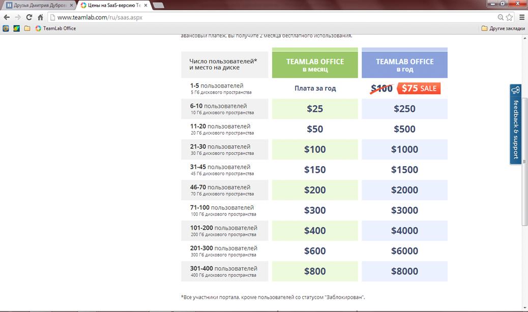 Итак, реализована совместная работа сотрудников предприятия (4 человека) в облаке на базе решения для малого и среднего бизнеса TeamLab. Достаточно универсальный облачный офис, хорошо подойдёт людям, уделяющим особое внимание командному духу, методам ведения блогов, форумов, опросов, закладок и событий. Хороший инструментарий для документов. Существенных аспектов против программного обеспечения как услуги (SaaS) не обнаружено, достаточно приемлемая цена; постоянные обновления; поддержка; надёжно хранимая информация, как на сервере, так и при необходимости на ПК или носителе информации; быстродействие системы.