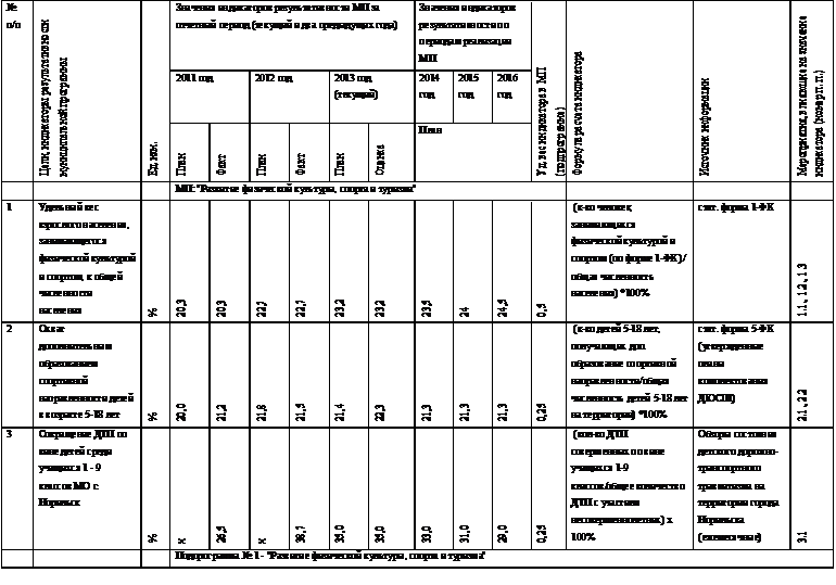 ü отклонения достигнутых значений индикаторов результативности МП от плановых как по МП в целом, так и по подпрограммам МП и и/или отдельным мероприятиям МП.