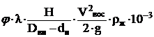 труб (73 мм), принимаем коэффициент гидравлического сопротивления равным 0,035.