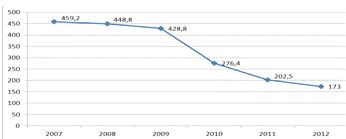 В 2012 году, по данным МВД РФ, в России было зарегистрировано около 173 тыс. преступлений экономической направленности, что на 14,6% меньше, чем в 2011 году. Таким образом, статистика МВД продолжает демонстрировать устойчивое снижение преступности вообще и уменьшение числа экономических правонарушений в частности. Удельный вес экономических преступлений в общем числе зарегистрированных составил 7,5%, ущерб от преступлений по оконченным уголовным делам достиг 144,85 млрд. руб.