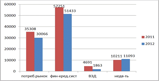 Диаграмма 2. Экономические преступления по сферам деятельности в 2011-2012 гг.