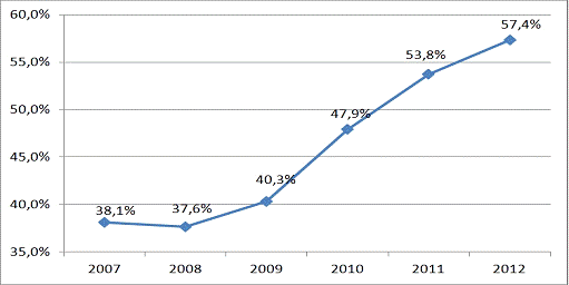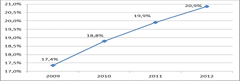 по сравнению с 2010 годом и составила 20,9% (в 2011 году- 20%).