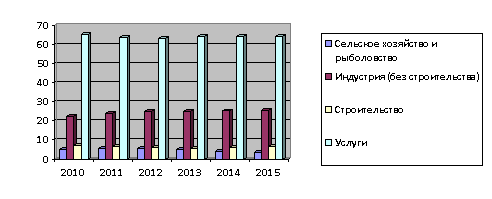 2. Отраслевая структура ВВП Болгарии за 2010-2015 год