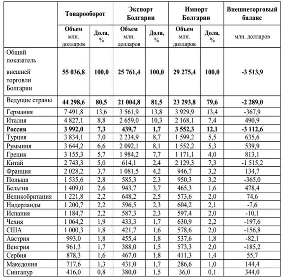 5. Анализ показателей внешней торговли Болгарии