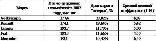 Табл. 4 - «Пятерка» наиболее популярных коммерческих марок в Европе в 2012 году