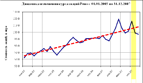 Сравнение динамики курсов акций и величины дохода по акциям тоже не в пользу конкурентов Рено. В 2010-2012 году стоимость акций французской компании составляла неуклонно повышалась - от €62,5 за акцию в самом начале 2010 года до максимальной отметки в €119,5 летом 2012 года (рис. 7). Среднегодовой доход на акцию составил в 2010 г. €13,23 на акцию, в 2011 - €11,23 за акцию, а в 2012 - €10,32. Доход, как видно, немного понижался, но оставался стабильным и положительным, что свидетельствует об устойчивом положении компании. В таблице 5 приведены некоторые показатели коммерческой деятельности Renault за период с 31 декабря 2009 года до 31 декабря 2012 года.