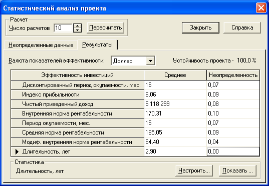 расчета показателей - 60 мес.