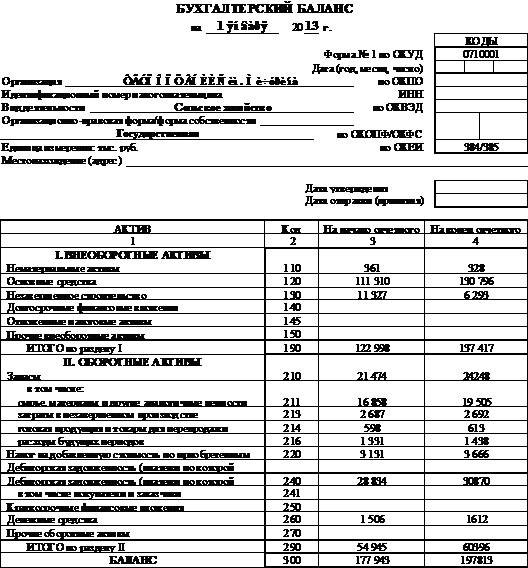 котором имеет смысл показать лишь основные разделы актива и пассива баланса;