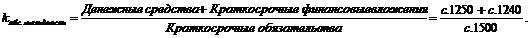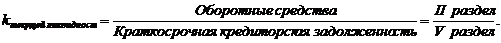 - коэффициент быстрой ликвидности;