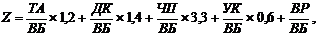четыре группы показателей, каждая из которых имеет свой набор коэффициентов.