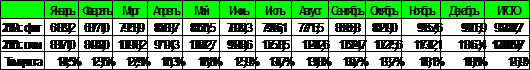 рост объемов производства на 8,9% в количественном и 26,9% в денежном выражении (см. табл.3.1 и 3.2);