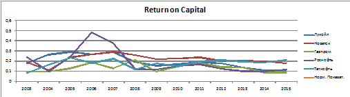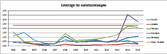 Насколько мы видим из данных, средние значения показателя за весь период, в том числе, в кризисный период находятся в пределах нормативных значений. У частных компаний размер обязательств в структуре баланса и по отношению к капитализации находится на более низком уровне по сравнению с государственными компаниями, волатильность изменения показателя также ниже по сравнению с государственными компаниями. У государственных компаний был факт превышения нормативного показателя Leverage по компании Роснефть в 2003 и 2007 гг., Leverageпо капитализации был превышен компанией Роснефть в 2014, 2015 гг.Исходя из анализа, можно сделать вывод о более сдержанной долговой политике частных компаний.