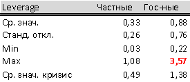 Государственные компании обладают более высоким уровнем Leverage, чем частные компании, то есть их кредитная нагрузка превышает кредитную нагрузку частных компаний.